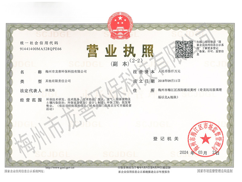 梅州市龍善環保科技有限公司為龍善環保股份有限公司(簡稱“龍善環保”)子公司。龍善環保于1995年12月成立,注冊資本為人民幣6,000萬元,總部位于深圳市南山區月亮灣大道2078號兆龍大樓16層。公司經生態環境部、廣東省生態環境廳、深圳市生態環境局、深圳市交通運輸委員會、深圳海事局等部門許可專業從事陸地和海洋環境保護產業的高科技民營企業,主要經營業務包括工業廢物收運、資源化利用和無害化處理處置、海洋船舶污油水接收和集中處理處置、突發環境事故清污應急處置等......
